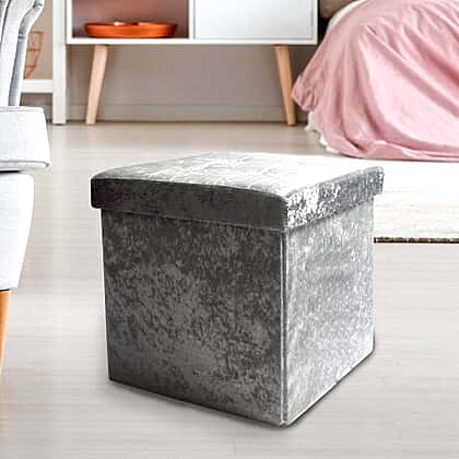 Lesser and Pavey Velvet Folding Storage Ottoman Box in Light Grey