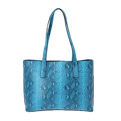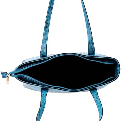 Light Blue Retro Snake Skin Pattern Handbag with Zipper Closure (Size 37x11x28 Cm)