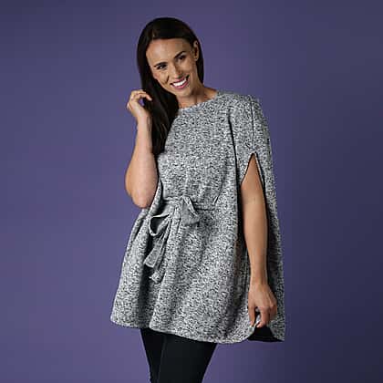Light Grey Knitted Poncho with Waistbelt (Size 55x77cm)
