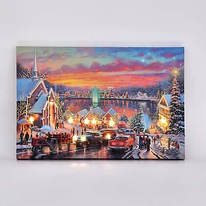 Light up Canvas Wall Decor Printing Lake Side City Scene 2xAA Battery (Not Inc.) - Village