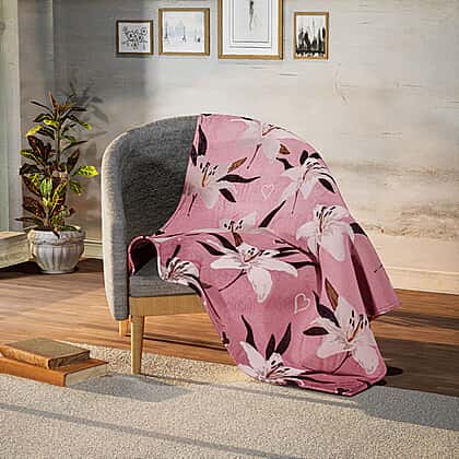 Lily Floral Print Super Soft Fleece Blanket (200x150 cm) - Pink