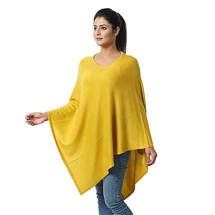Limited Available 100% Cashmere Pashmina Wool Poncho in Yellow Colour Free Size