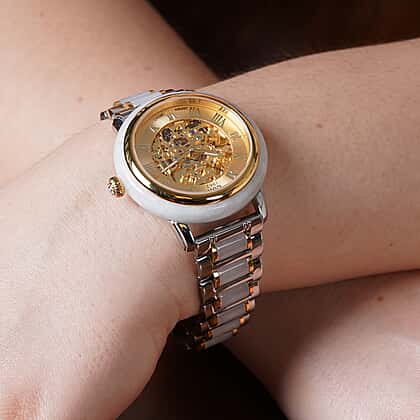 Eon Hand Carved White Jade Japanese Skeleton Movement Water-Resistant Watch