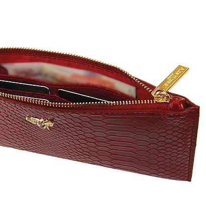 Limited Edition - ALICE WHEELER Brunel Slim Line Snake Pattern Purse (Size 21x10x1 Cm) - Cherry