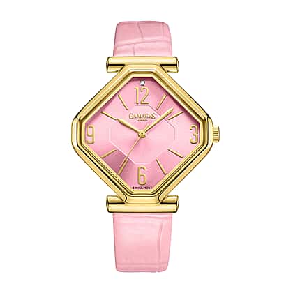 Limited Edition - Gamages Of London Ladies Diamond Stature Ladies Watch with Leather Strap - Pink