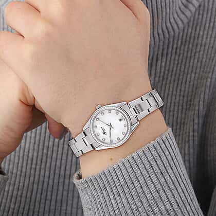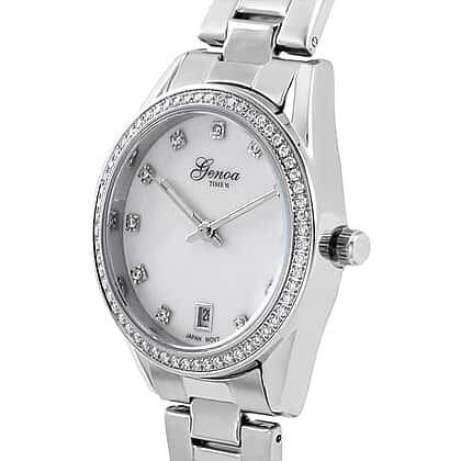Limited Edition - GENOA 36 Moissanites Japan Movt. White MOP 3 ATM WR Ladies Watch - Silver