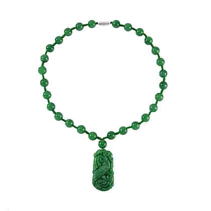 Limited Edition - Hand Carved Green Jade Necklace (Size - 20) in Rhodium Overlay Sterling Silver 460.70 Ct.