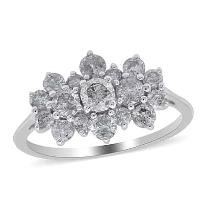1 Carat Diamond Cluster Boat Ring in 9K White Gold SGL Certified I3 GH
