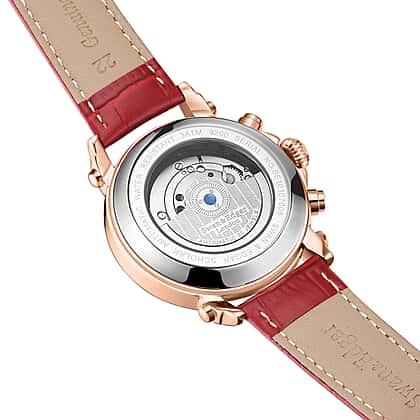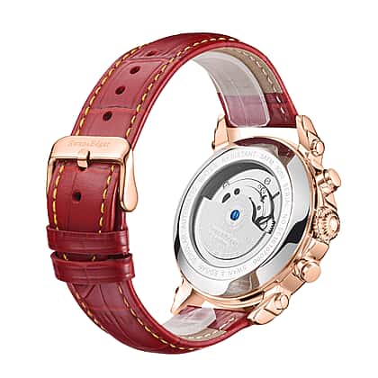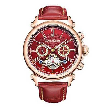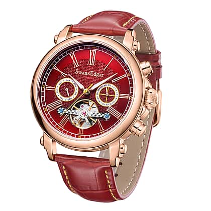 Limited Edition Swan & Edgar Hand Assembled Scholar Automatic Movement Red Dial Water Resistant Watch With Red Leather Strap