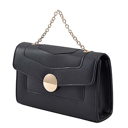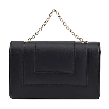 Faux leather Litchi Grain Pattern Clutch Bag with Metal Chain and Shoulder Strap - Black