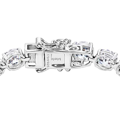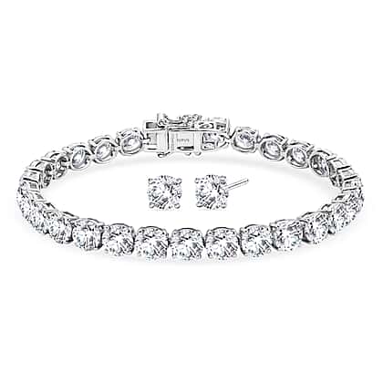 LIVE FROM JAIPUR EXLCLUSIVE - Set of 2 - D'Joy Moissanite Solitaire Stud Push Post Earring & Bracelet (Size - 7) in Rhodium Overlay Sterling Silver 22.80 Ct, Silver Wt. 10.47 Gms