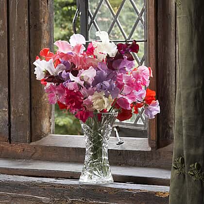Add serenity to your garden area with Sweet pea jumbo plugs and attract all the charm. This gardening set includes 2 hanging baskets which look delightful and can be decorated in a garden or shade, and 6 plugs of trailing sweet pea jumbo, which grows up to 30x30cm. Enjoy a ravishing mixture of colours and fragrances with Gardening Direct hanging pots and plant plugs.