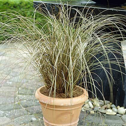 - Carex buchananii (briwn), Carex Evergold (gold-edged), and Festuca Blue are all supplied in 9cm pots.