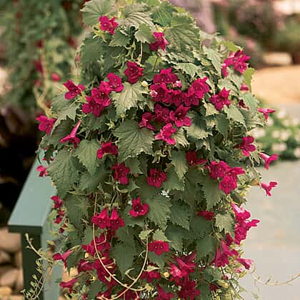 - The lovely trumpet-shaped flowers contrast brilliantly with the lush green foliage and give the plant a tropical appearance.