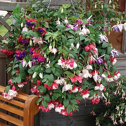 - Fuchsias are big, bold, and blousy in a basket that can be reused year after year.