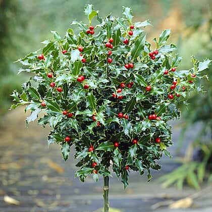 Transform your garden with the Ornamental Holly Blue Maid. This stunning female variety of blue holly produces masses of tiny white flowers in spring and bright red berries in autumn, making it the perfect addition to your garden all year round. In addition, its distinct deep blue-green upper and light green underside leaves create a striking contrast. Easy to grow and virtually maintenance-free, this hardy plant requires little upkeep, making it perfect for novice and experienced gardeners. Grow in pairs in large pots or as a specimen tree to add height and interest to your garden.