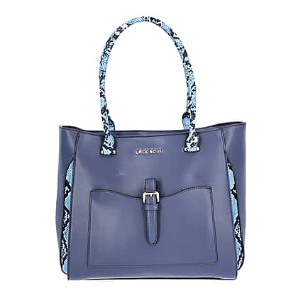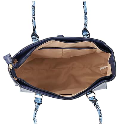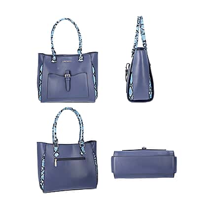 LOCK SOUL Blue Snake Pattern Handbag with Detachable Shoulder Strap (38x16x30cm) - Dark Blue