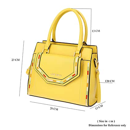 LOCK SOUL Satchel Handbag with Detachable Shoulder Strap and Flap Pocket 28x13x23cm Yellow Colour