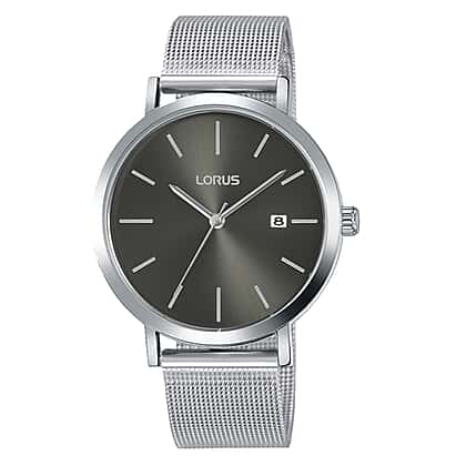 LORUS Mens Mesh Bracelet Analogue Watch with Black Dial in Stainless Steel