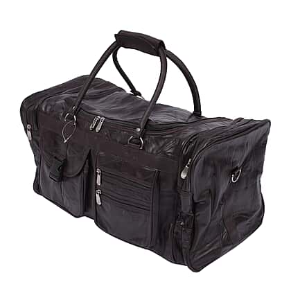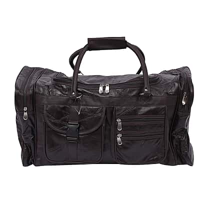LOS ANGELES CLOSEOUT 100% Genuine Patch Leather Travel Duffle Bag with Shoulder Strap (Size 23x11x10 Inches) - Brown