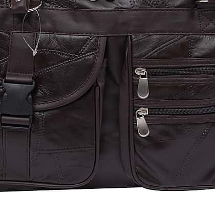 Travel with style, but without compromising on sufficient space. This Genuine Patch Leather Travel Duffle Bag in brown is trendy and useful. The genuine leather patch bag, measuring 23x11x10 inches, has ample zips, partitions, and space to carry all your essentials and more. The shoulder strap helps you carry all you want.