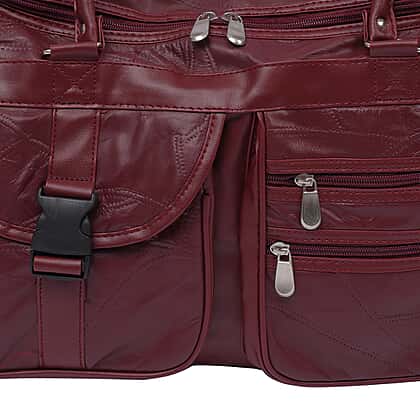LOS ANGELES CLOSEOUT 100% Genuine Patch Leather Travel Duffle Bag with Shoulder Strap (Size 23x11x10 Inches) - Burgundy