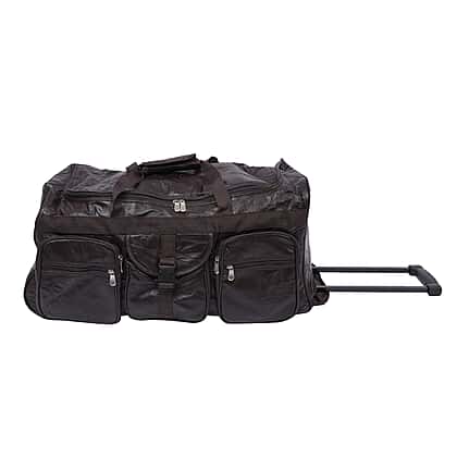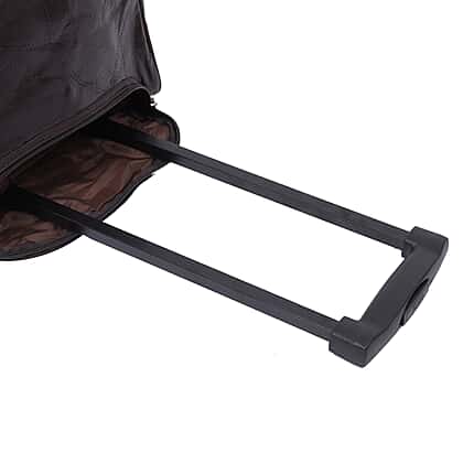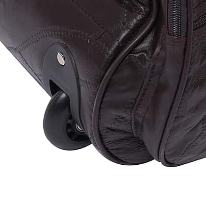 LOS ANGELES CLOSEOUT 100% Genuine Patch Leather Travel Duffle Bag with Trolley (Size 25x13x12 Inches) - Brown