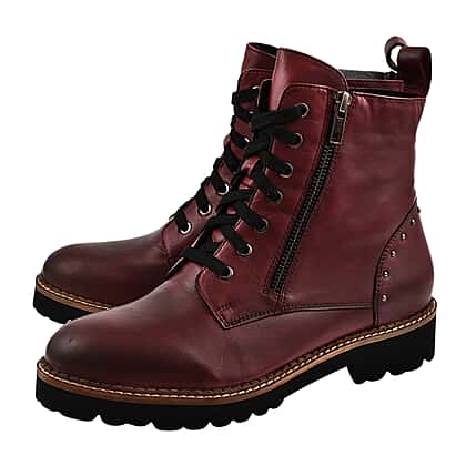 LOTUS - Dark Red Leather Braxton Ankle Boots - Dark Red