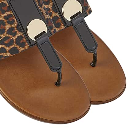 Lotus Arna Leopard-Print Slip-On Toe-Post Sandals (Size 3)