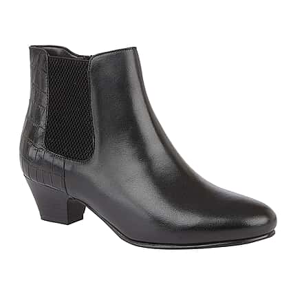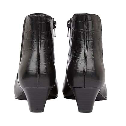 Lotus Black & Croc-Print Leather Victoria Ankle Boots (Size 3)