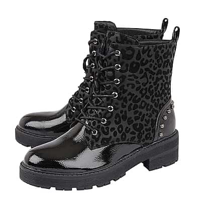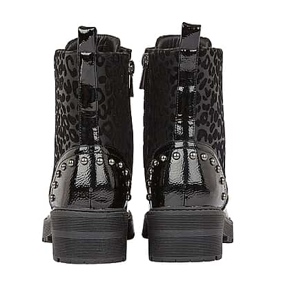 Lotus ELENA Animal Print Ankle Boots - Black