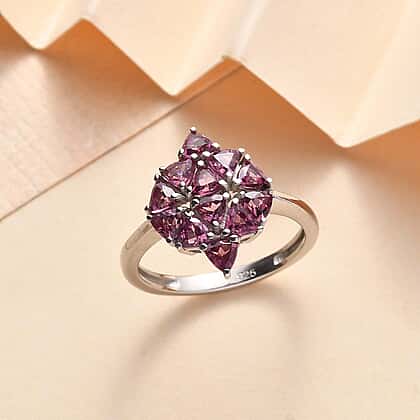 Lotus Garnet Cluster Ring in Platinum Overlay Sterling Silver 1.65 Ct.