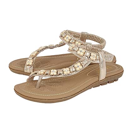 Lotus Gold Helena Flat Open-Toe Sandals (Size 3)