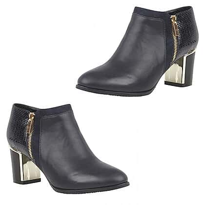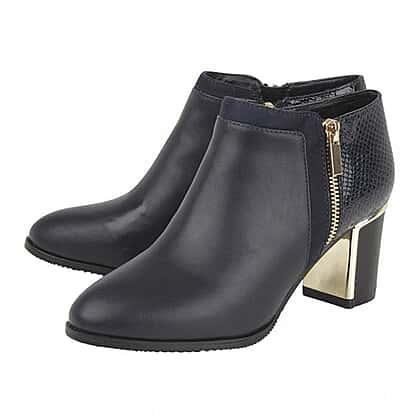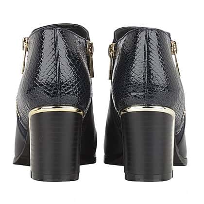 Lotus Chloe Navy Faux Fur Lined Ankle Boots with Snake Skin Pattern and Zipper Closure
