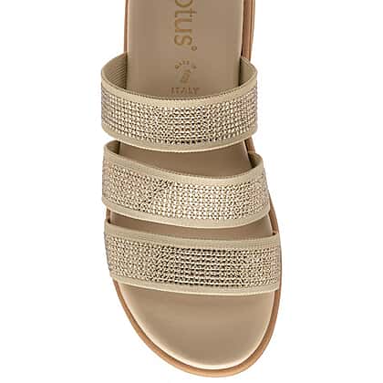 The Lotus Diamante Olga mule sandals are a dazzling choice for those seeking comfort and style in their footwear. Crafted in Italy, these elegant sandals boast a textile upper and come adorned with three wide straps, each enhanced with sparkling diamantes. With a subtle 3cm wedge heel, they're designed to complement your day-to-night outfits, making them a versatile addition to any capsule holiday wardrobe. You're sure to turn heads in these stunning mules from Lotus.