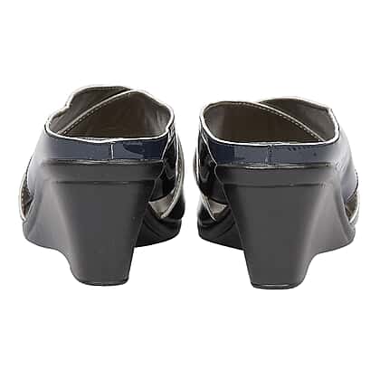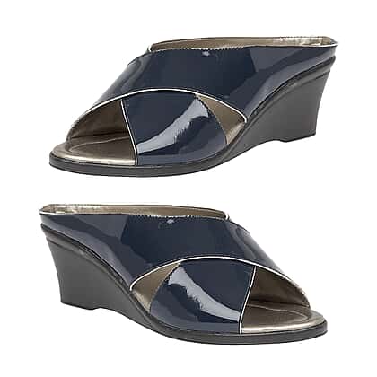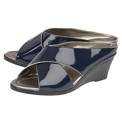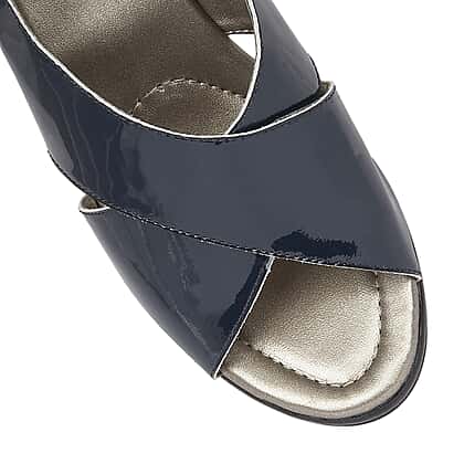 Lotus Patent Leather Trino Open-Toe Mule Sandals in Navy Colour