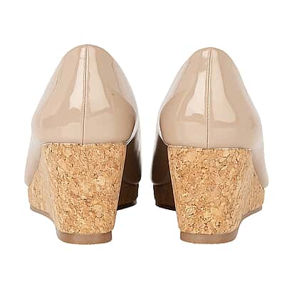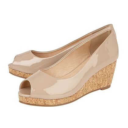 Lotus Patent Odina Peep-Toe Wedge Shoes - Nude