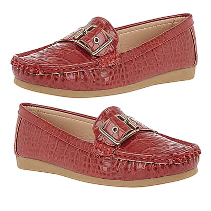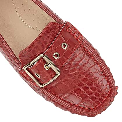 LOTUS Crocodile Pattern Slip-On Women's Loafers - Red
