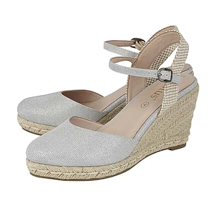 Lotus Silver Shimmer Textile Maira Wedge Shoes (Size 4)