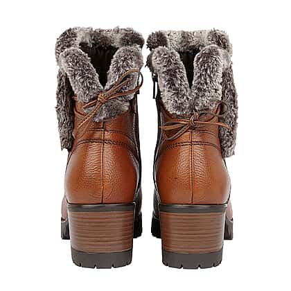 - TRIM: Faux fir trimming enhance the all-over look of this pair of ankle boots