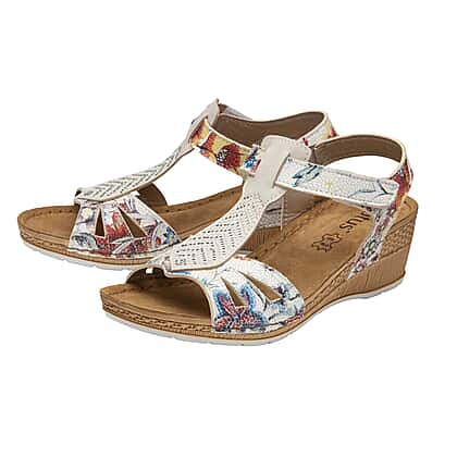 Lotus Vincenza Multicolour Upper Women's Wedge Sandals - White