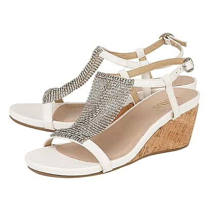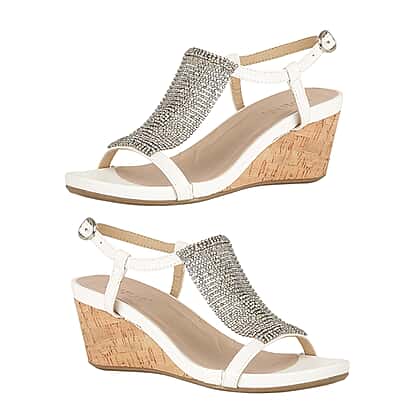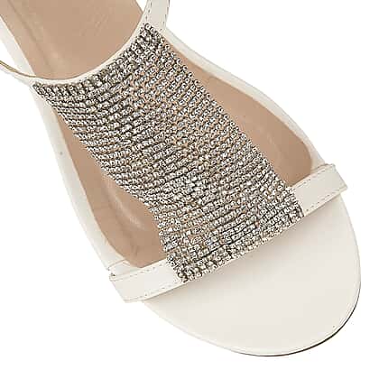 - The sandals are designed in white faux leather upper that is decorated with beautiful diamante work for an enchanting look