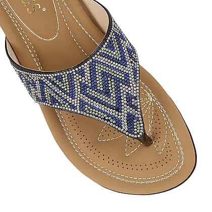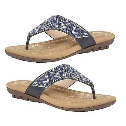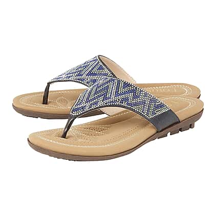 Lotus Patti Flat Toe-Post Sandals in Blue Colour