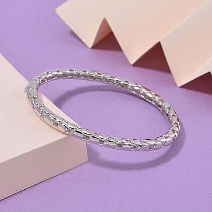 LUCY Q - Bubble Collection Full Openable Bangle (Size -7.5) in Rhodium Overlay Sterling Silver