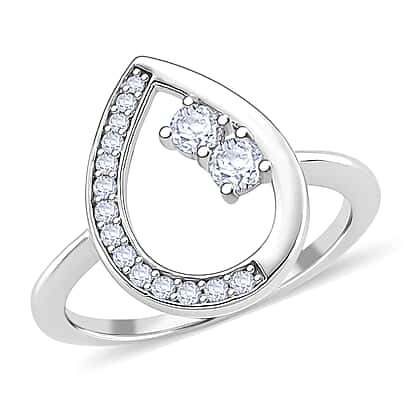 Lucy Q - Fluid Collection Moissanite Ring in Rhodium Overlay Sterling Silver