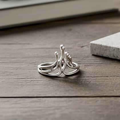 Lucy Q-Drop Collection Rhodium Overlay Sterling Silver Drip Ring, Silver Wt. 4.70 Gms.