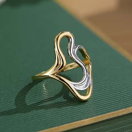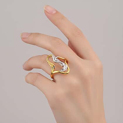 A true modern masterpiece, this Lucy Q ring redefines fluid design with its sculptural two-tone finish. Crafted in hypoallergenic 925 sterling silver, this piece offers durability and comfort to sensitive skin. The glossy yellow gold plating offers warmth and shiny appeal. Its organic design captures movement and form in perfect harmony. The flowing lines create a statement look that’s bold yet refined, making it a standout piece for any occasion. Lightweight and beautifully polished, this ring embodies contemporary artistry with a touch of everyday sophistication.