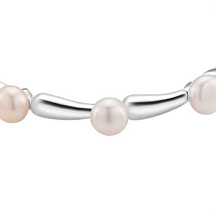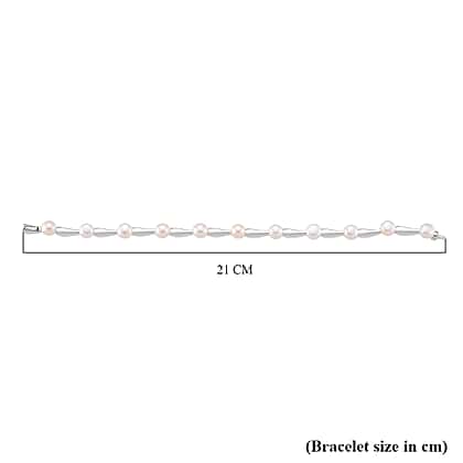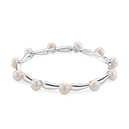 Lucy Q Pearl Drop Collection - White Fresh Water Pearl Bracelet (Size - 7) in Rhodium Overlay Sterling Silver 30.00 Ct, Silver Wt.14.60 Gms.
