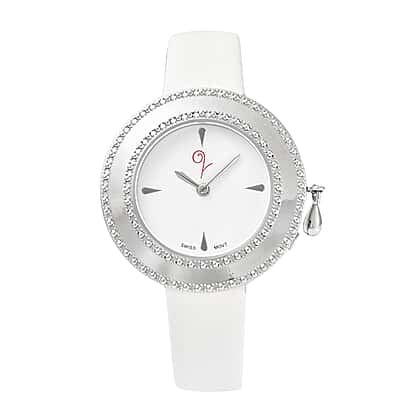 Lucy Q Swiss Movement 5 ATM Water Resistent Watch with Charm with White Strap in Stainless Steel