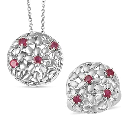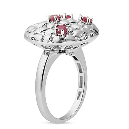 LucyQ Filigree Collection - African Ruby (FF) Interchangeable Poison Ring/Locket with Chain (Size 22) in Rhodium Overlay Sterling Silver, Silver Wt 8.72 Gms